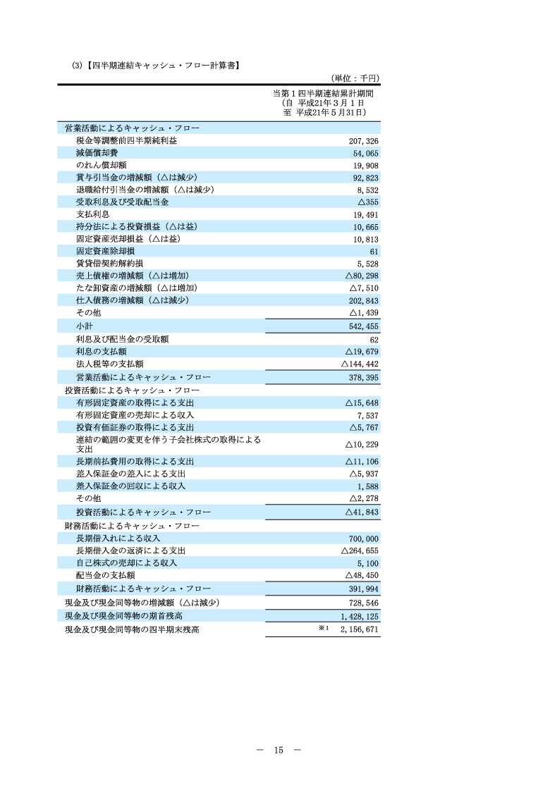 第25期 第1四半期報告書 四半期連結キャッシュ・フロー計算書