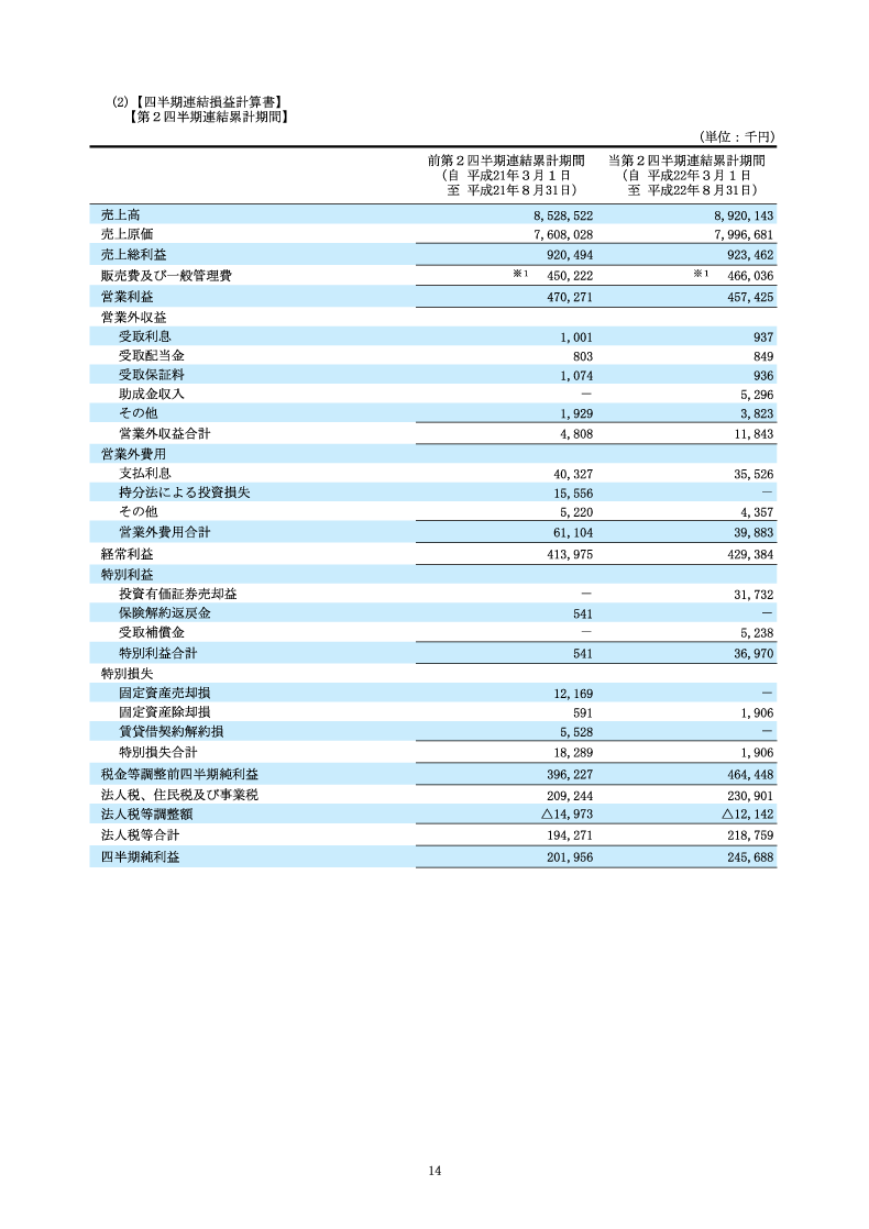 第26期 第2四半期 四半期報告書 四半期連結損益計算書