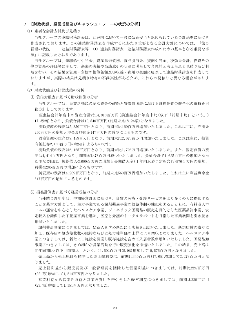 財政状態、経営成績及びキャッシュ・フローの状況の分析
