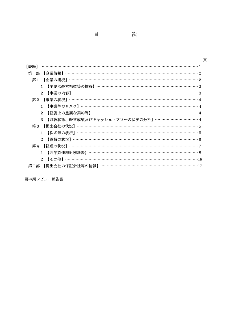 第28期第3四半期 四半期報告書 目次