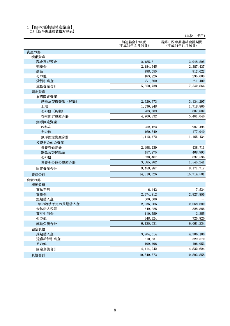 第28期第3四半期 四半期報告書 四半期連結財務諸表