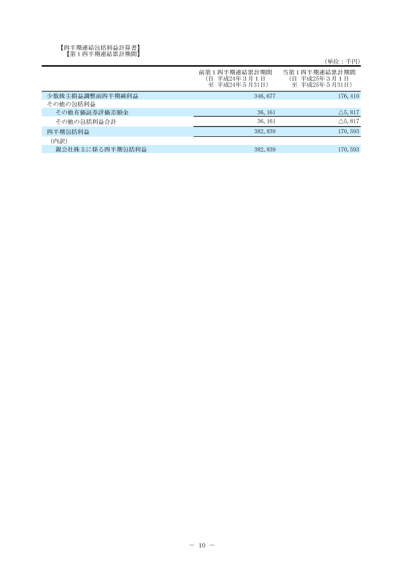 平成26年2月期 第1四半期報告書 四半期包括利益計算書