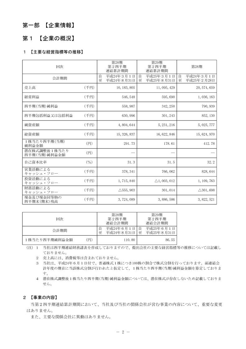 平成26年2月期 第2四半期報告書 [第1]企業の概況