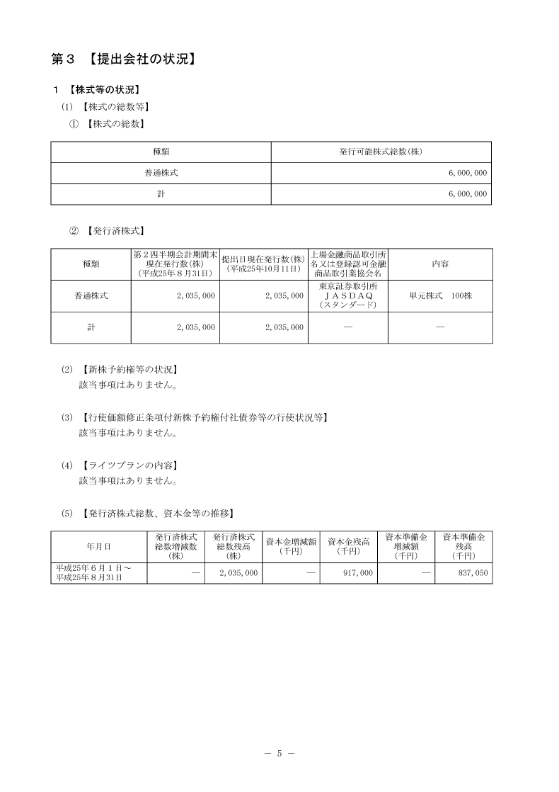 平成26年2月期 第2四半期報告書 [第3]提出会社の状況