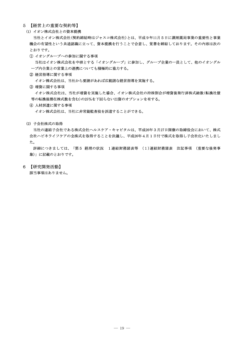 経営上の重要な契約等