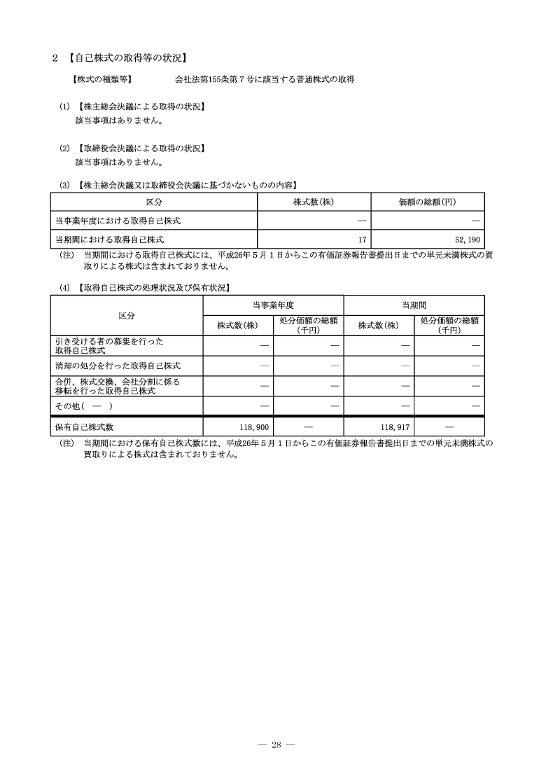 平成26年2月期 有価証券報告書 自己株式の取得等の状況