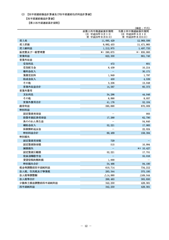 平成27年2月期 第2四半期報告書 四半期連結損益計算書