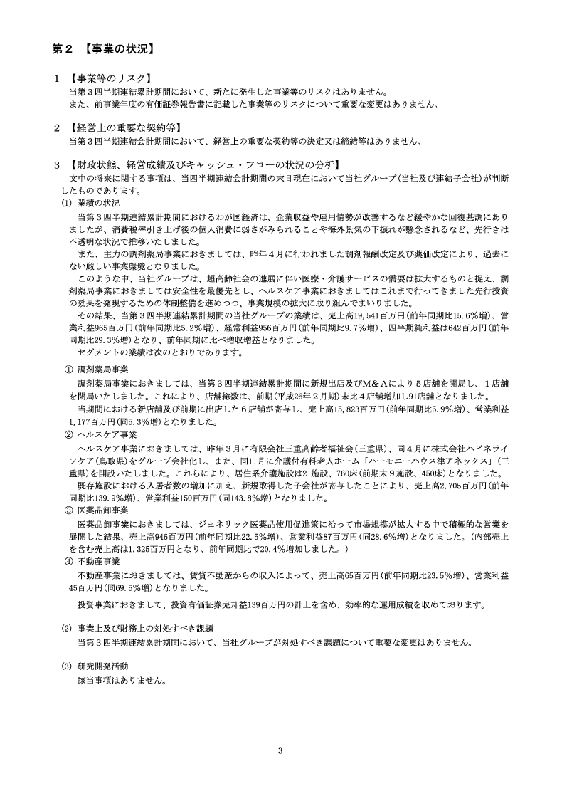 平成27年2月期 第3四半期 四半期報告書 [第2]事業の状況