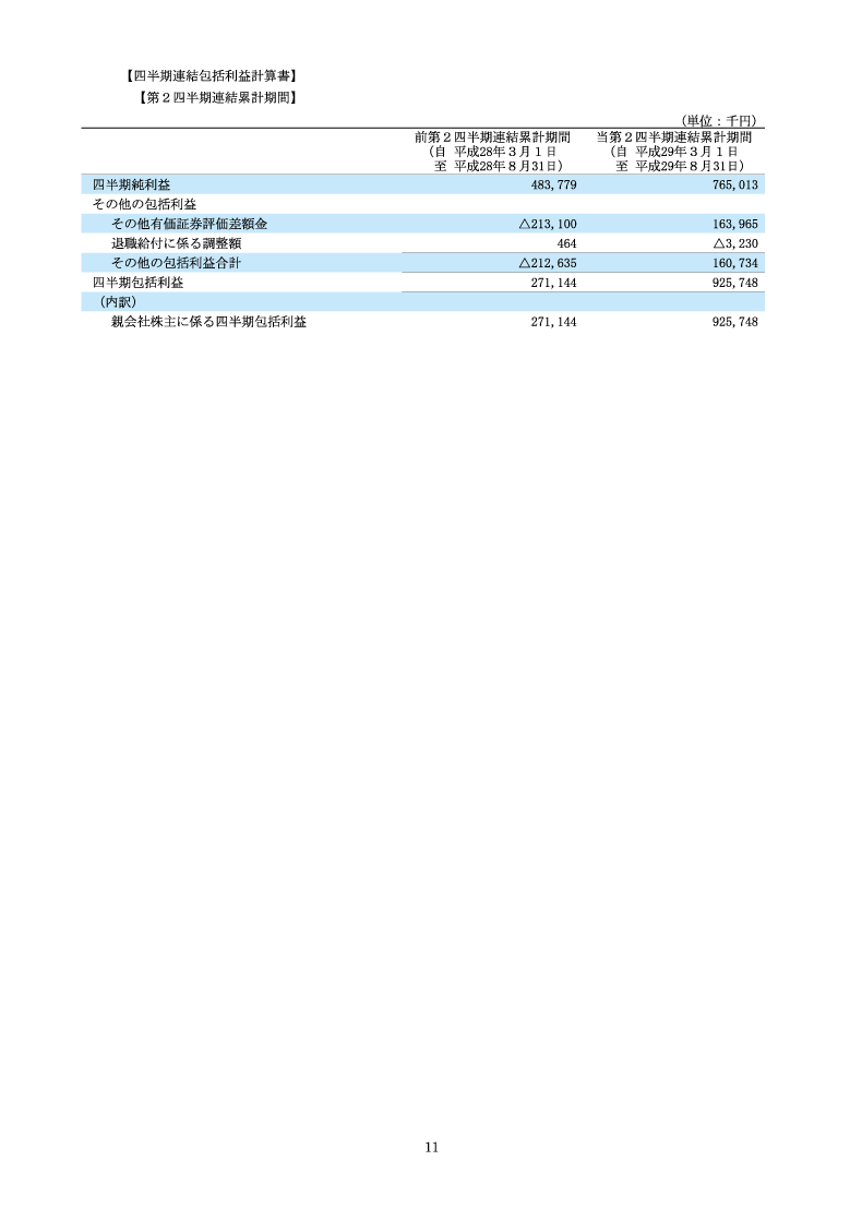 第33期第2四半期 四半期報告書 四半期包括利益計算書