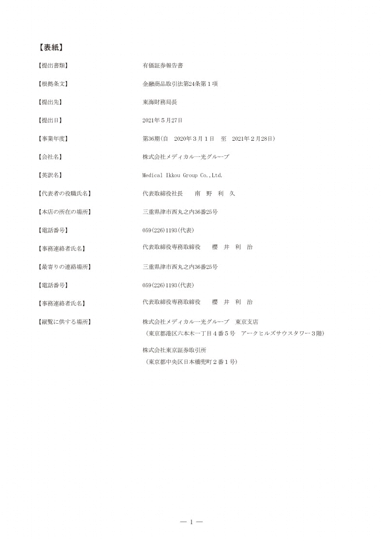 2021年2月期 有価証券報告書
