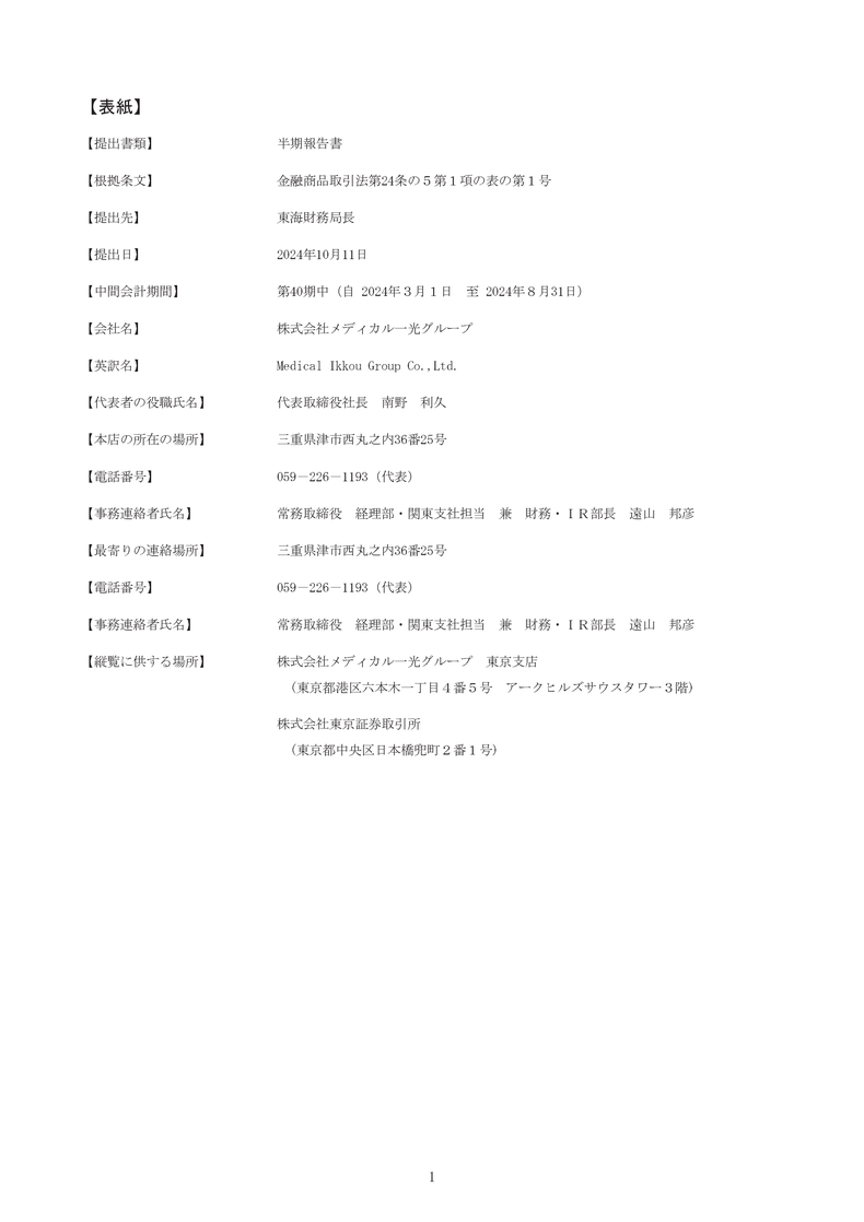 2025年2月期半期報告書