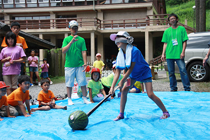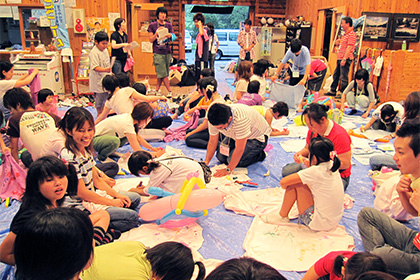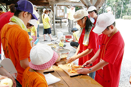 初日には、記念Tシャツづくりに始まり、キャンプファイヤー、花火など、豊かな自然のなかで親睦が図られ、2日目には昆虫採集で自然に親しんだり野外調理に挑戦したりと、子供たちにとって忘れることのできない最高のサマーキャンプとなりました。