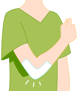 - 貼った所を日光に当てないように、サポーター、長袖やスラックスで貼った所を日光からさえぎるのが大切です。