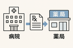医師が薬を処方する際、これまでは紙に書かれた処方箋を患者様に手渡し、その処方箋を薬局に持参して薬を受け取るという流れでした。しかし、電子処方箋では、処方内容が電子的に記録され、インターネットなどの仕組みを使って病院やクリニックから薬局に直接送信されます。