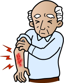 帯状疱疹は、水ぼうそうと同じウイルス(ヘルペスウイルス)が原因で皮膚に痛みや発疹が現れる病気です。